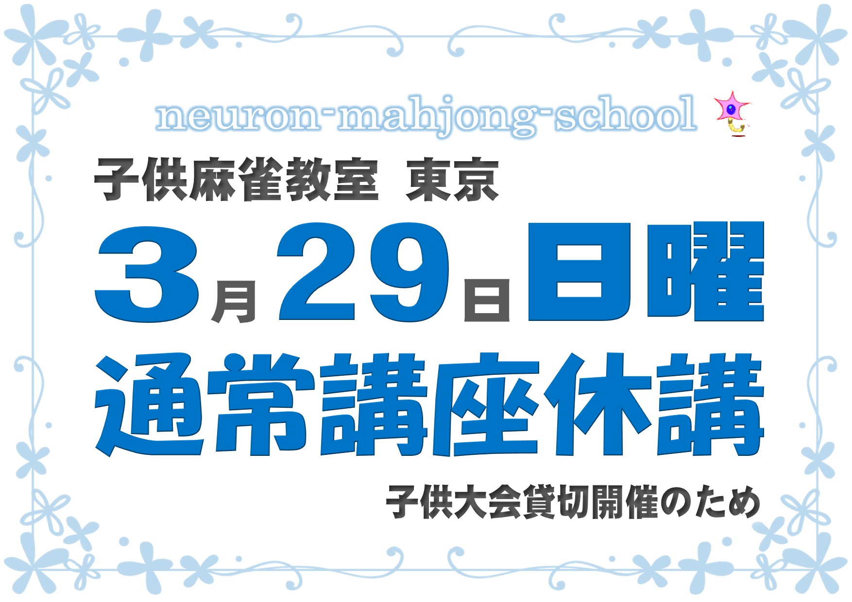 6階フロア奥の「麻雀教室」の看板が目印です。
