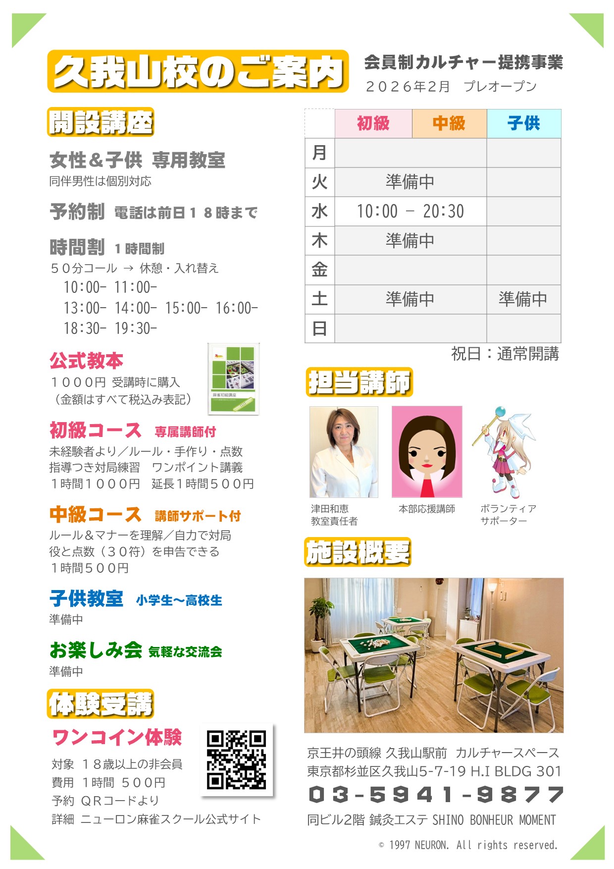 since2026 登録会員-名ニューロン麻雀スクール久我山校