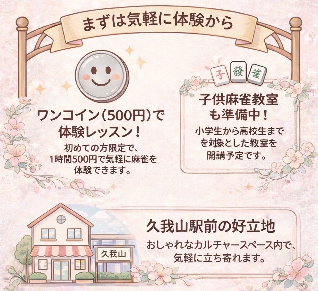 🔶健全な趣味としての麻雀を🔶認定講師の指導のもと🔶子供から大人まで🔶気軽に学んで楽しめる🔶各種講座を開講