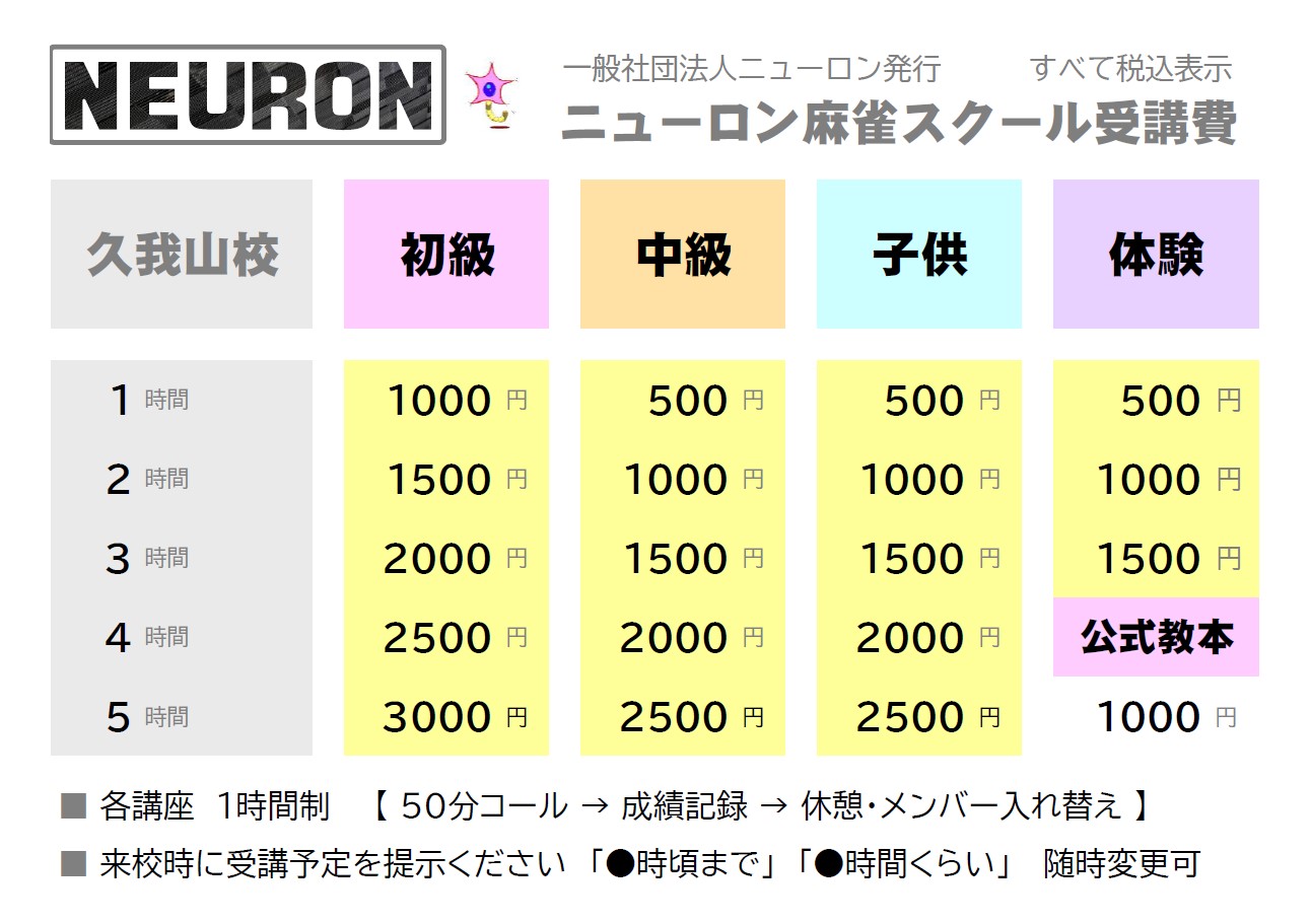- ニューロン麻雀スクールを初めて受講する18歳以上の方(非会員)※18歳未満は子供麻雀教室