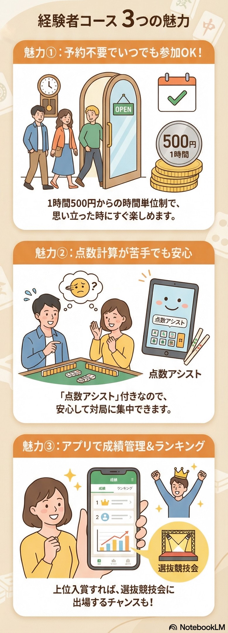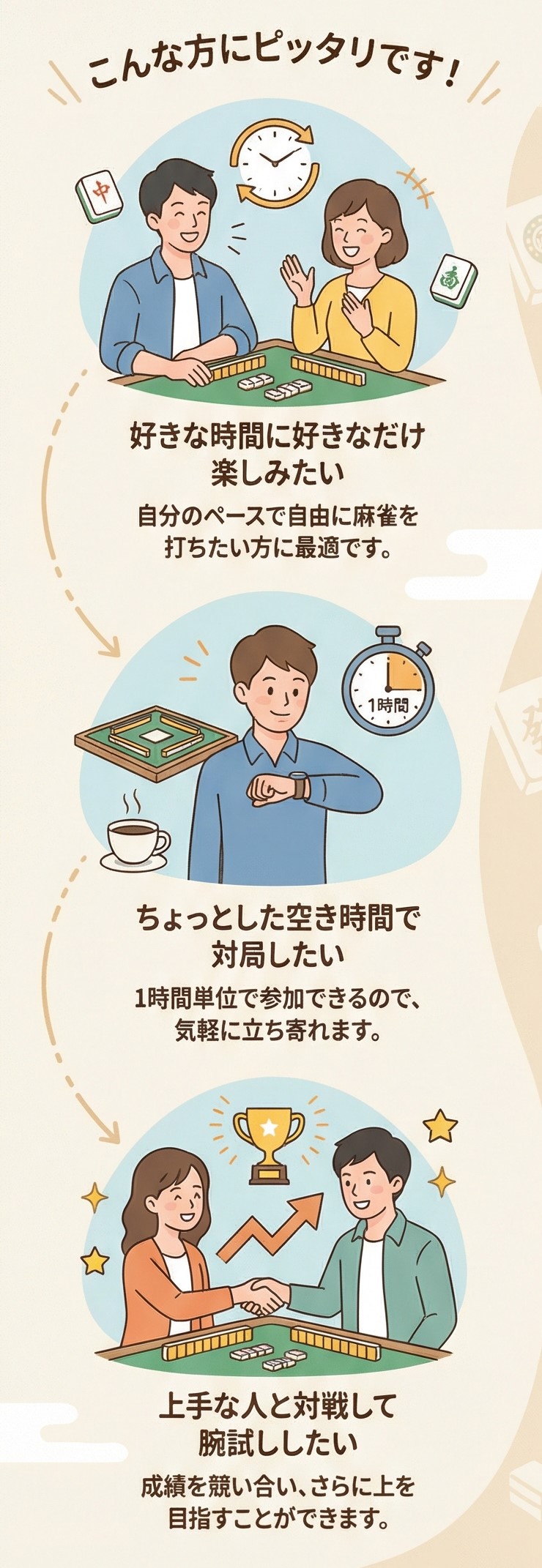 👉対象はルール&マナーを習得/スムーズに対局/役と点数(20符-50符)をだいたい申告できる方