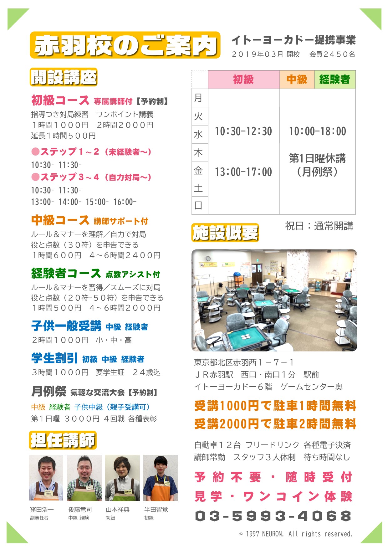 since2019 登録会員2450名イトーヨーカドー提携ニューロン麻雀スクール赤羽校