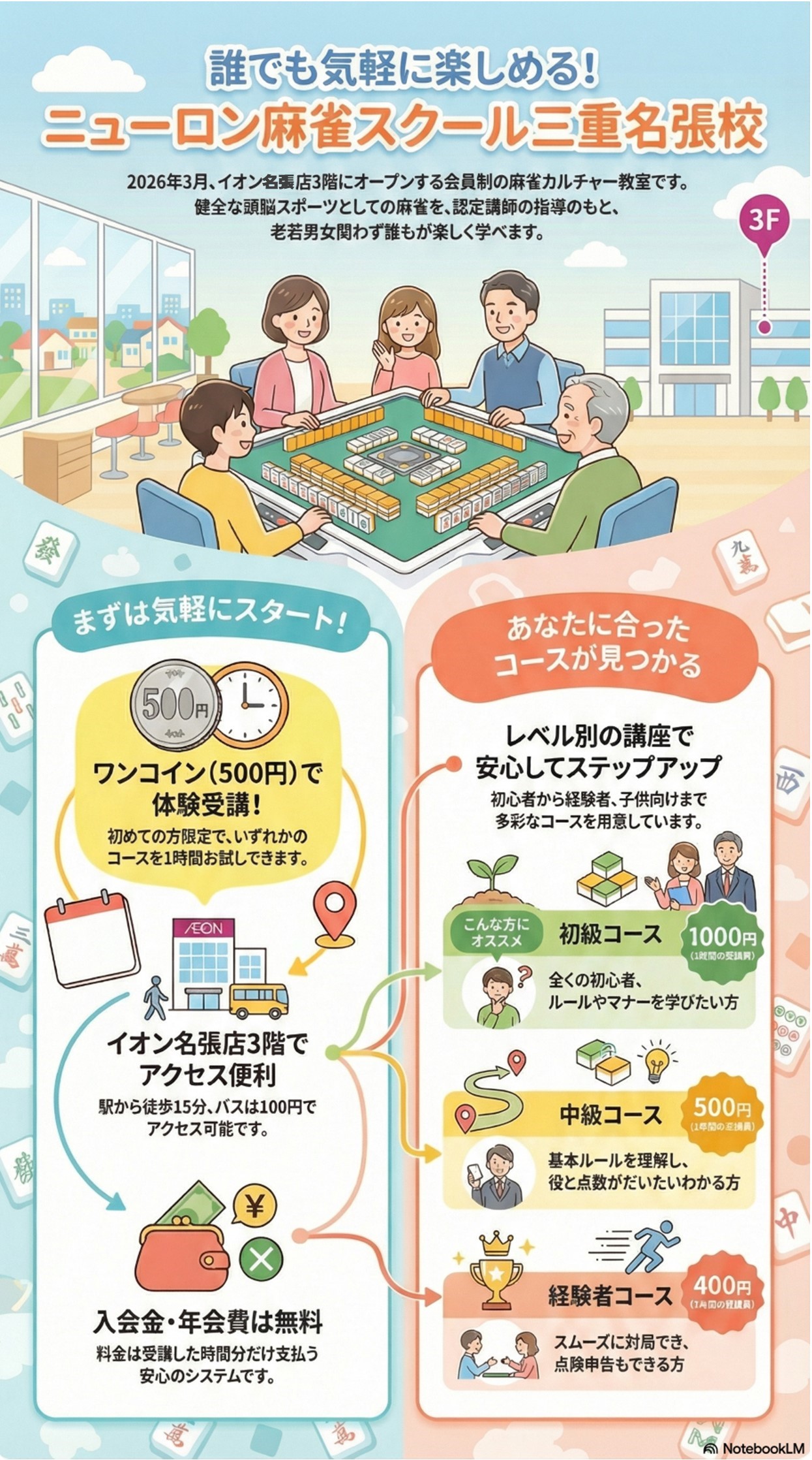 🔶健全な趣味としての麻雀を🔶認定講師の指導のもと🔶子供から大人まで🔶気軽に学んで楽しめる🔶会員制カルチャー教室