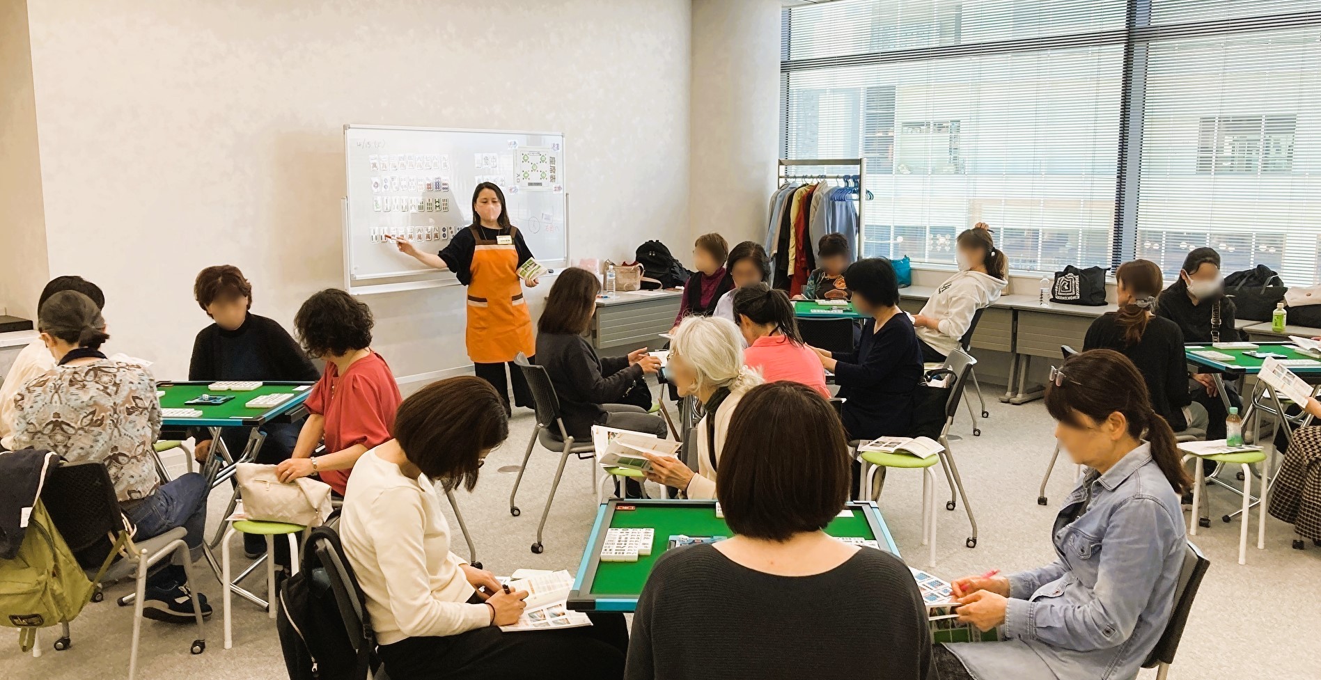 専属講師1名、少人数制、手積み卓、ワンポイント講義など、未経験者から中級者に適した講座