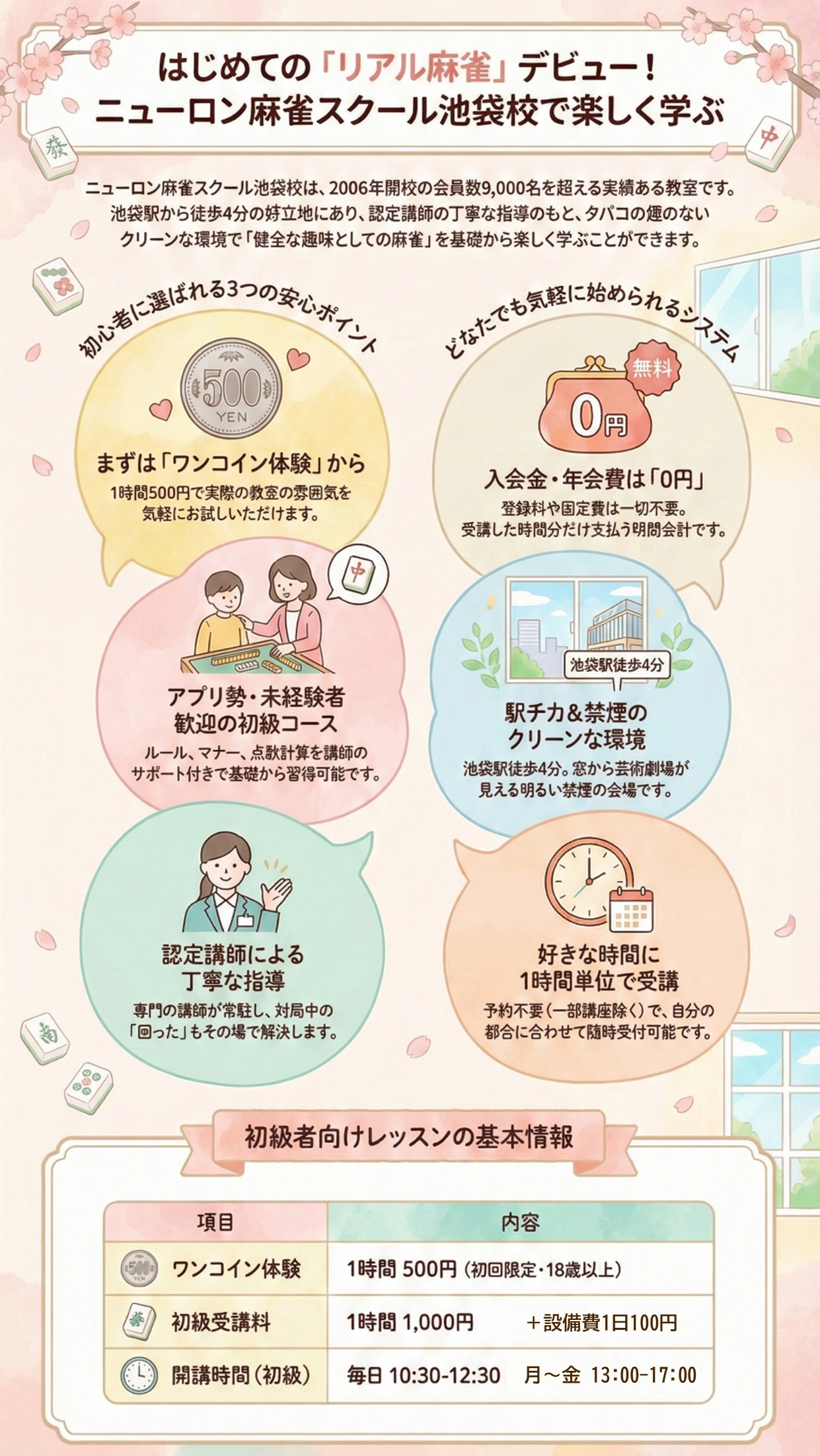 🔶健全な趣味としての麻雀を🔶認定講師の指導のもと🔶気軽に学んで楽しめる🔶各種講座を開講