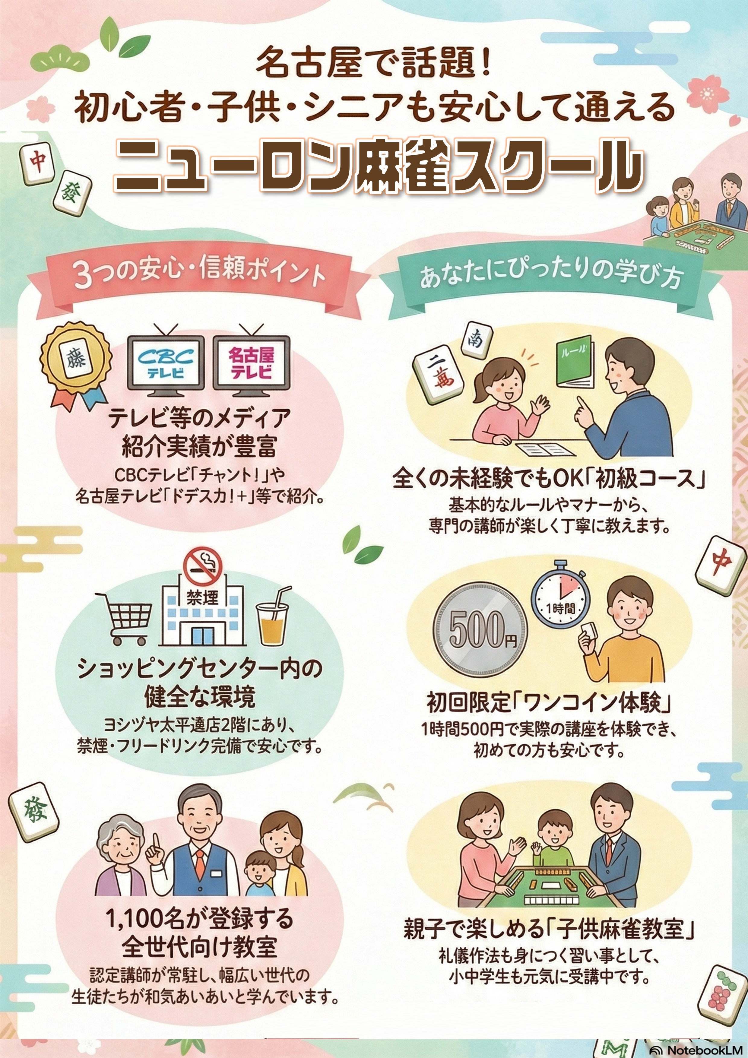 since2022 登録会員1102名名古屋市内ショッピングセンターニューロン麻雀スクール太平通校